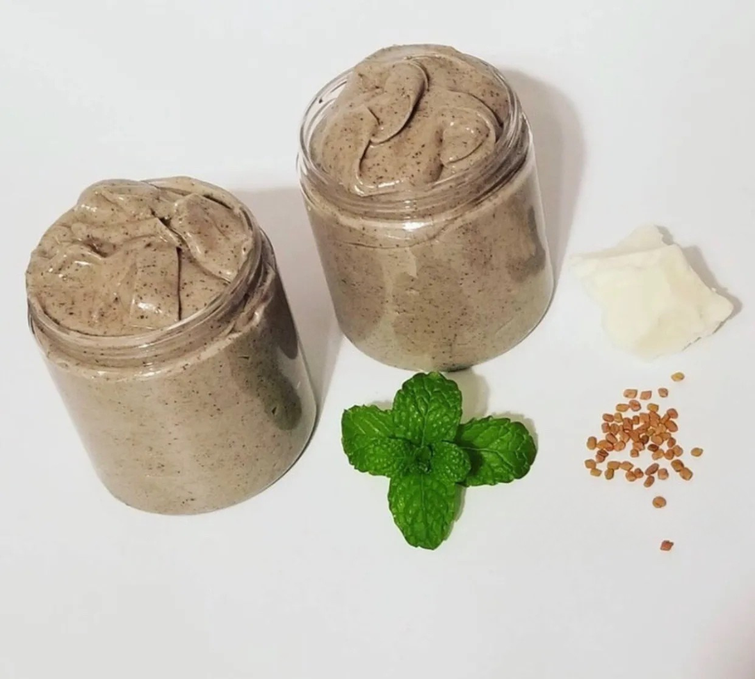 Gemaakt van de beste en pure 28 soorten butters, kruiden en olies zoals: o.a. Shea butter, Mango butter, Karkarolie, Black Jamaican Castor olie, Aloë Vera en Funegreek olie, en div. essentiële olies van o.a. T-tree, Lavendel, Pepermunt en Rozemarijn.